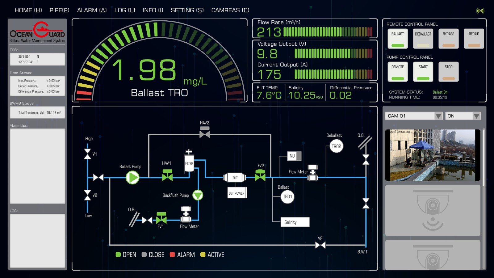 海洋衛士?壓載水管理系統具備遠程控制功能,可與海德威智慧集成平臺實時互通,實現云端數據采集、系統操作與運行狀況診斷。